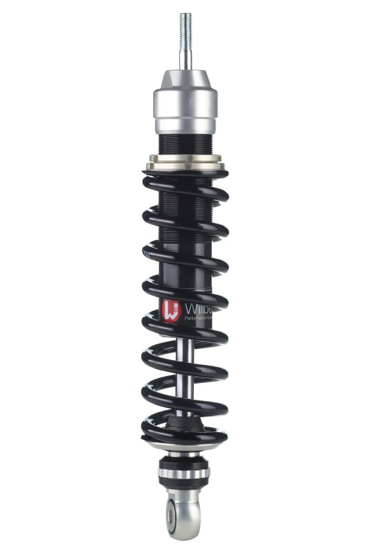 - Además de las versiones básicas con muelle negra (Blackline) y azul (Blueline), puede, con un coste adicional, hacer que pintemos la muelle en todos los colores RAL. Además, existe la opción de pedir el amortiguador como Wilbers Nightline. Las superficies de aluminio arriba se anodizan en negro mate en la Nightline, el muelle está pintado de negro y las aplicaciones que sirven para la reglaje del amortiguador se anodizan en rojo. Para ver el recargo, consulte el formulario (especifique el color en el proceso de pedido)